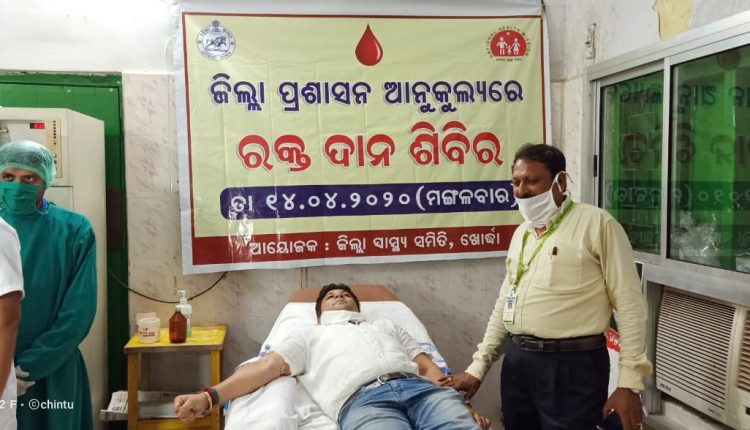 ଖୋର୍ଦ୍ଧା ରକ୍ତଭଣ୍ଡାରରେ ରକ୍ତ ଅଭାବ ସମସ୍ୟା ଦୂର କରିବା ଲାଗି ପ୍ରଶାସନ ଓ ଜିଲା ସ୍ବାସ୍ଥ୍ୟ ସମିତି ମିଳିତ ଆନୁକୂଲ୍ୟରେ ମଙ୍ଗଳବାର ଏକ ରକ୍ତଦାନ ଶିବିର ଅନୁଷ୍ଠିତ ।
