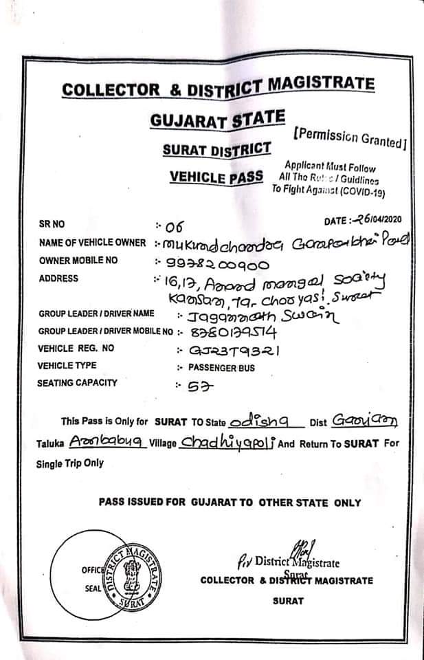 ଗଞ୍ଜାମ, (ଟୁକୁନା ପ୍ରଧାନ, ୨୭.୦୪.୨୦୨୦) – : ସୁରତରୁ ଗଂଜାମ ବାହାରିଲା ୪ ବସ୍ । ଗୁଜରାଟ ସୁରତରୁ ୪ଟି ବସ୍ ଓଡ଼ିଶା ବାହାରିଛି । ସୁରତରେ ଫସିଥିବା ଓଡ଼ିଆ ଲୋକଙ୍କୁ ଧରି ବାହାରିଲା ବସ୍ । ପ୍ରତି ବସ୍ରେ ୫୦ରୁ ଅଧିକ ଯାତ୍ରୀଙ୍କୁ ଧରି ଗାଡ଼ି ଛାଡ଼ିଲା । ଯାତ୍ରୀ ଓ ବସ୍କୁ ଯିବାକୁ ସ୍ଥାନୀୟ ପ୍ରଶାସନ ଅନୁମତି ଦେଇଛନ୍ତି । ଯାତ୍ରୀମାନେ ନିଜ ଖର୍ଚ୍ଚରେ ବସ୍ ରିଜର୍ଭ କରି ଆସୁଥିବା ଜଣାପଡିଛି । ସମସ୍ତ ଯାତ୍ରୀ ଗଂଜାମ ଜିଲ୍ଲାକୁ ଆସୁଛନ୍ତି ।