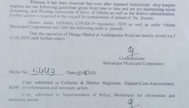 ଅନିର୍ଦ୍ଧିଷ୍ଟ କାଳ ପାଇଁ ବ୍ରହ୍ମପୁର ଆମ୍ବ ମାର୍କେଟ ବନ୍ଦ। ରାଜ୍ୟ By Laxmanarekha News Last updated May 11, 2020 78 0 ଗଞ୍ଜାମ, ( LR NEWS ଟୁକୁନା ପ୍ରଧାନ, ୧୧.୦୫.୨୦୨୦)-: କରୋନା ଭାଇରସ ର ଭୟଭୟତା ନେଇ ବ୍ରହ୍ମପୁର ସହର ସ୍ଥିତ ଆମ୍ବ ମାର୍କେଟ କୁ ଅନିର୍ଦ୍ଧିଷ୍ଟ କାଳ ପାଇଁ ବନ୍ଧ କରିଛନ୍ତି ବି ଏମ୍ ସି କତୃପକ୍ଷ । ସୂଚନା ମୁତାବକ ଏହି ମାର୍କେଟ ରେ ଲୋକମାନେ ସାମାଜିକ ଦୂରତାକୁ ମାନୁନାହାନ୍ତି । 0 78 Share FacebookTwitterWhatsappEmailGoogle+
