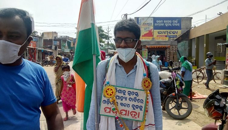 ଗଞ୍ଜାମ, ( LR NEWS ଟୁକୁନା ପ୍ରଧାନ, ୨୧.୦୫.୨୦୨୦) – : ଓଡ଼ିଶା କୁ ସ୍ଵତନ୍ତ୍ର ରାଜ୍ୟ ପାହ୍ୟା ମାନ୍ୟତା ଦାବିରେ ଆଜକୁ ପ୍ରାୟ ୨ ମାସ ହେଲାଣି ଜଗତସିଂହପୁର ଜିଲ୍ଲା ବଡଚଣା ବ୍ଲକ ର ସତ୍ୟବ୍ରତ ଦାସ ଓଡ଼ିଶାର ୩୧୪ ବ୍ଲକ ପାଦରେ ଚାଲି ଚାଲି ଭ୍ରମଣ କରୁଛନ୍ତି । ଆଜି ସେ ଗଞ୍ଜାମ ଜିଲ୍ଲାର ବେଗୁନିଆପଡ଼ା ବ୍ଳକ କୁ ଆସି ପୁରୁଷୋତ୍ତମପୁର ବ୍ଲକ କୁ ଯିବା ବେଳେ କୋଦଳା ଏନ୍ ଏ ସି ଠାରେ ଶ୍ରି ଦାସ ଙ୍କୁ କୋଦଳା ଏନ୍ ଏ ସି ର ଗୃହରଖି ରଜନୀକାନ୍ତ ସେଠି, ସମାଜସେବୀ ଦଣ୍ଡପାଣି ପଟ୍ଟନାୟକ, ସାଜନ କୁମାର ସାହୁ, ସୁଦାମ ମହାନ୍ତି, ଆଇ ୱାଇ ଏ ନ୍ୟୁଜ ରାଜ୍ଯ ପ୍ରତିନିଧି ଜଗବନ୍ଧୁ ସାହୁ ପ୍ରମୂଖ ଉତ୍ତରୀୟ, ପୁଷ୍ପଗୁଚ୍ଛ, ପଇଡ ଆଦି ପ୍ରଦାନ କରି ତାଙ୍କୁ ସମ୍ବର୍ଦ୍ଧିତ କରିବା ସହ ତାଙ୍କ ମନୋବଳକୁ ଦୃଢ଼ କରିଥିଲେ ।