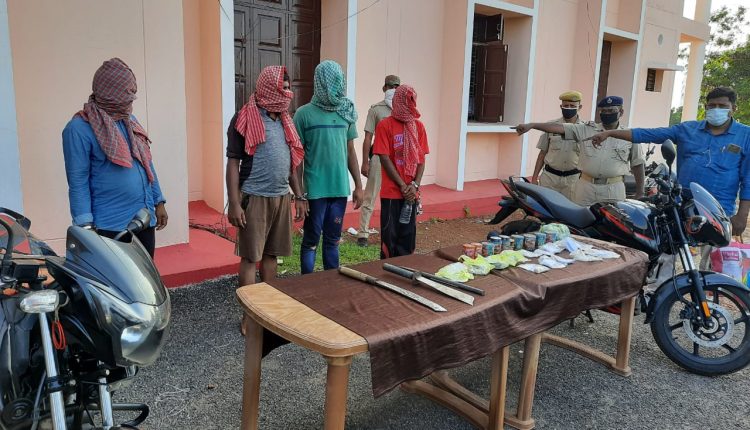 ଖୋର୍ଦ୍ଧା (LR NEWS ୨/୭/୨୦) ଭୋଗଡ଼ା ବୋମାମାଡ଼ ଓ ଡକାୟତି ଘଟଣାର ମୁଖ୍ୟ ଅଭିଯୁକ୍ତ ସମେତ ଚାରି ଗିରଫ ଜଣେ ମହିଳା ସାମିଲ ।ଏମାନଙ୍କ ମଧ୍ୟରେ ଜଣେ ମହିଳା ସାମିଲ।ସେମାନଙ୍କ ଠାରୁ ଦୁଇଟି ବାଇକ,ଭୁଜାଲି ଆଦି ମାରଣାସ୍ତ୍ର , ଚାରୋଟି ଜୀବନ୍ତ ବୋମା,ଅଢେଇ କେଜିରୁ ଉର୍ଦ୍ଧ୍ବ ରୂପା,68 ଗ୍ରାମ ସୁନା ଏବଂ ୪୪,୫୦୦ଟଙ୍କା ଜବତ।ଏନେଇ ଏକ ସାମ୍ବାଦିକ ସମ୍ମିଳନୀରେ ସୂଚନା ଦେଲେ ଖୋର୍ଦ୍ଧା ଏସପି ଅଜୟେ ପ୍ରତାପ ସ୍ୱାଇଁ ।ଗିରଫ ଅଭିଯୁକ୍ତ ମାନେ ହେଲେ ନୟାଗଡ଼ ଜିଲ୍ଲା ଇଟାମାଟି ଅଂଚଳର ଗଗନ ପ୍ରଧାନ, ଅଖିଳ ସାହୁ,କାହ୍ନୁ ପ୍ରଧାନ, ବସନ୍ତ ମଂଜରୀ ପ୍ରଧାନ ଓ ଖଣ୍ଡପଡା ଅଂଚଳର ରାକେଶ ନାୟକ।