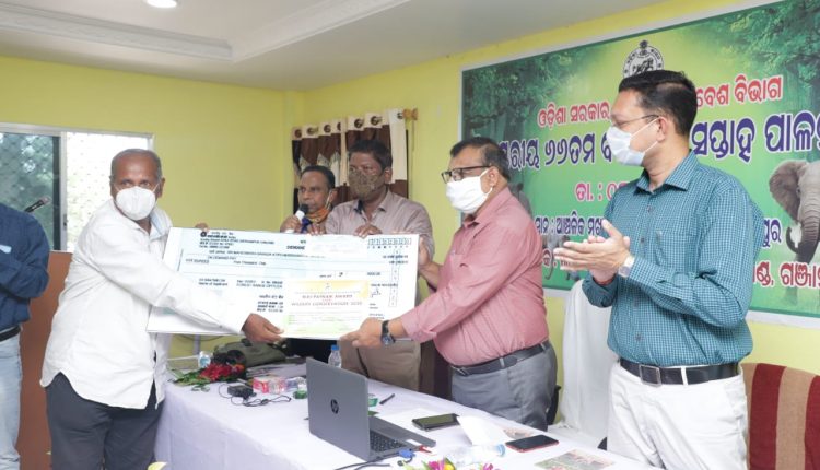 ବ୍ରହ୍ମପୁର ( ଟୁକୁନା ପ୍ରଧାନ, ୧୧.୧୦.୨୦୨୦) – : ଗଞ୍ଜାମ ଜିଲ୍ଲା ବେଗୁନିଆପଡ଼ା ବ୍ଳକ ମର୍ଦ୍ଦକୋଟ ଗ୍ରାମ ବାସିନ୍ଦା ସମାଜସେବୀ ମହେଶ୍ବର ବରାଡ଼ଙ୍କୁ ୬୬ତମ ବନ୍ୟପ୍ରାଣୀ ସପ୍ତାହ ପାଳନ ଅବସରରେ ବ୍ରହ୍ମପୁର ଆଞ୍ଚଳିକ ମୁଖ୍ୟ ବନ ସରକ୍ଷଂକ କାର୍ଯ୍ୟାଳୟରେ ବିଜୁ ପଟ୍ଟନାୟକ ଉପଖଣ୍ଡ ସ୍ତରୀୟ ବନ୍ୟପ୍ରାଣୀ ସୁରକ୍ଷା ଆୱାର୍ଡ ଓଡ଼ିଶା ସରକାରଙ୍କ ଜଙ୍ଗଲ ଓ ପରିବେଶ ବିଭାଗ ତରଫରୁ ପ୍ରଦାନ କରାଯାଇଅଛି ।ଏହି ଉତ୍ସବରେ ଆଞ୍ଚଳିକ ମୁଖ୍ୟ ବନ ସରକ୍ଷଂକ ପ୍ରଶାନ୍ତ କୁମାର ମିଶ୍ର, ବ୍ରହ୍ମପୁର ବନଖଣ୍ଡ ଅଧିକାରୀ ଅମ୍ଳାନ କୁମାର ନାୟକ, ଘୁମୁସର ବନଖଣ୍ଡ ଅଧିକାରୀ ସତ୍ୟନାରାୟଣ ଦେହୁରୀ , ଇକୋ କ୍ଳବ ସଂଯୋଜକ ଲକ୍ଷ୍ମୀ ନାରାୟଣ ବେଜ, ଗଞ୍ଜାମ ଜିଲ୍ଲାର ବହୁ ବିଦ୍ୟାଳୟର ଶିକ୍ଷକ ଓ ସମାଜସେବୀ ଏବଂ ବନବିଭାଗର ବହୁ କର୍ମଚାରୀ ଯୋଗଦେଇ ପୁରସ୍କାର ବିତରଣ ସଭାକୁ ସଫଳ କରିଥିଲେ ।