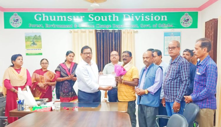 ବ୍ରହ୍ମପୁର LR NEWS ଭଞ୍ଜନଗର ତା ୨୫.୩.୨୦୨୩ .-ରାଜ୍ୟ ସରକାରଙ୍କ ତରଫରୁ ସବ-ଡିଭିଜନ ସ୍ତରୀୟ ଶ୍ରେଷ୍ଠ ଶିକ୍ଷାୟତନ ଓ ଶିକ୍ଷକ ରୂପେ ପୁରସ୍କୃତ ବାଦଗଡ଼ ସରକାରୀ ପ୍ରକଳ୍ପ ଉ.ପ୍ରା ସ୍କୁଲ ପ୍ରକୃତିବନ୍ଧୁ ଶ୍ରୀ ଦୂତିକୃଷ୍ଣ ଲେଙ୍କାଙ୍କୁ ଵ୍ରହ୍ମପୁର ସର୍କଲ ସ୍ତରରେ ଶ୍ରେଷ୍ଠ ପରିବେଶ ପ୍ରେମୀ ଭାବେ ପ୍ରମାଣପତ୍ର ଦେଇ ସମ୍ମାନିତ କରାଯାଇ ଥିବାରୁ ସ୍ଥାନୀୟ ଘୁମୁସର ଦକ୍ଷିଣ ବନ ଖଣ୍ଡ କାର୍ଯ୍ୟାଳୟ ଠାରେ ତାଙ୍କୁ ସମ୍ବର୍ଦ୍ଧିତ କରାଯାଇଛି ।