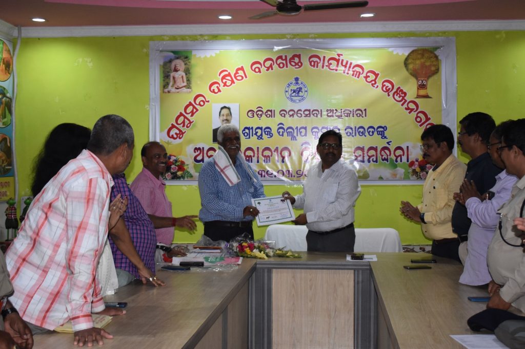 ଭଞ୍ଜନଗର,LR NEWS ତା-୩୧.୩.୨୦୨୩(ଶୁକ୍ରବାର) ଆଜି ଭଞ୍ଜନଗର ଘୁମୁସର ଦକ୍ଷିଣ ବନ ଖଣ୍ଡ ,କାର୍ଯ୍ୟାଳୟ ତରଫରୁ ଘୁମୁସର ଦକ୍ଷିଣ ବନ ଖଣ୍ଡ ଅଧିକାରୀ ତଥା ଭଞ୍ଜନଗର ବନ ନିଗମର ମୁଖ୍ୟ ପରିଚାଳକ ଶ୍ରୀ ଯୁକ୍ତ ଦିଲ୍ଳୀପ କୁମାର ରାଉତଙ୍କୁ ଅବସର କାଳୀନ ବିପୁଳ ବିଦାୟ ସମ୍ବର୍ଦ୍ଧନା ଦିଆଯାଇଛି । ଅପରାହ୍ନରେ ଘୁମୁସର ଦକ୍ଷିଣ ବନଖଣ୍ଡ ତରଫରୁ ତାଙ୍କୁ କର୍ମଚାରୀ ତଥା ଅଧିକାରୀ ମାନେ ବିଦାୟ ସମ୍ବର୍ଦ୍ଧନା ସଭା ଆୟୋଜନ ପୂର୍ବକ ତାଙ୍କ ସୀମିତ ରହଣି କାଳର ସ୍ମୃତି ଅନୁଭୁତି ବଖାଣି ଥିଲେ । ଦୁଇଟି ପର୍ଯ୍ୟାୟରେ ଏହି କାର୍ଯ୍ୟକ୍ରମ ସମ୍ପନ୍ନ ହୋଇଥିଲା । ପ୍ରଥମ ପର୍ଯ୍ୟାୟରେ ବିଦାୟୀ ବ୍ୟକ୍ତିତ୍ୱ ତାଙ୍କ ଦୀକ୍ଷାନ୍ତ ଭାଷଣ ରଖି ଘୁମୁସର ଜଙ୍ଗଲର ଗୁରୁତ୍ୱ ଓ ଗରିମା ଅଭିଜ୍ଞତା ଅନୁଭୁତି ବଖାଣି ଥିଲେ ଓ ବନଅଗ୍ନି ନିୟନ୍ତ୍ରଣ, ବନ ଓ ପରିବେଶ ସୁରକ୍ଷା, କୃଷ୍ଣସାର ମୃଗ ଓ ହାତୀ ସୁରକ୍ଷା ତଥା ବନ୍ୟ ପଶୁ ପକ୍ଷୀ ସଫଳ ପରିଚାଳନା,ଉତ୍କୃଷ୍ଟ ନର୍ସରୀ ଚାରା ଉତ୍ପାଦନ, ଔଷଧୀୟ ବୃକ୍ଷ ଓ ପୁଷ୍ପ-ଉଦ୍ୟାନ ସୃଷ୍ଟି,ବ୍ୟାପକ ବନୀକରଣ ଓ ପ୍ରଚୁର କେଶ ଧୃତ,ପାନୀୟ ଜଳ ଯୋଗାଣ ଓ ପୁଷ୍କରିଣୀ ଖନନ,ପୁନରୁଦ୍ଧ।ର ଏବଂ ବନ ସୁରକ୍ଷା ସମିତି ତଥା ମହିଳା ସ୍ୱୟଂ ସହାୟକ ଗୋଷ୍ଠୀ ମାନଙ୍କୁ ନେଇ ବନ,ପରିବେଶ ସୁରକ୍ଷା, ସଚେତନତା ସୃଷ୍ଟି କରିଥିବା ସକ୍ରିୟ ବନ କର୍ମଚାରୀ, ଅଫିସ କର୍ମଚାରୀ ଏବଂ ସକ୍ରିୟ ପାର।ସ୍କ୍ୱାର୍ଡ ବନ କର୍ମୀ ମାନଙ୍କୁ ସେମାନଙ୍କ ଉଲ୍ଲେଖନୀୟ କାର୍ଯ୍ୟ ପାଇଁ ପ୍ରଶଂସା ପତ୍ର ପ୍ରଦାନ କରିଥିଲେ ।