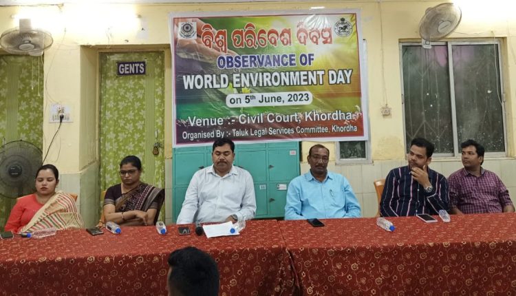 ଖୋର୍ଦ୍ଧାLR NEWS,୫/୬;ତାଲୁକ ଆଇନ ସେବା କମିଟି ପକ୍ଷରୁ ଖୋର୍ଦ୍ଧା କୋର୍ଟ ପରିସରରେ ପରିବାର ଅଦାଲତ ଜଜ ରାଜେଶ କୁମାର ନାୟାରଙ୍କ ଅଧ୍ୟକ୍ଷତାରେ ବିଶ୍ୱ ପରିବେଶ ଦିବସ ଅନୁଷ୍ଠିତ ହୋଇଯାଇଛି।ଏଥିରେ ମୁଖ୍ୟ ଅତିଥି ଭାବେ ବରିଷ୍ଠ ଦେୱାନି ଜଜ (ମହିଳା କୋର୍ଟ)ଚିନ୍ମୟୀ ରଥ ଯୋଗ ଦେଇ ଆଜିକାର ସମାଜରେ ପରିବେଶ ପ୍ରଦୂଷଣ ହେବା ସହିତ ଅସନ୍ତୁଳିତ ହୋଇପଡିଛି।ଏପରିକି ଚାଷ ଜମି ସଙ୍କୁଚିତ ହେବା ସହ ଜଙ୍ଗଲ ଓ ଚାଷ ଜମିରେ କଂକ୍ରିଟ ରାସ୍ତା ନିର୍ମାଣ ହେବା ସହ ବଡ଼ ବଡ଼ ଅଟାଳିକା ଗଢ଼ିଉଠିଛି।ଏହା ଦ୍ୱାରା ପରିବେଶ ପ୍ରଦୂଷିତ ହୋଇପଡିଛି।