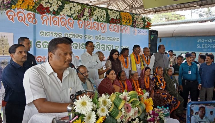 ବ୍ରହ୍ମପୁର ରେଳ ଷ୍ଟେସନ ଠାରେ ବରିଷ୍ଠ ନାଗରିକ ତୀର୍ଥଯାତ୍ରା ଟ୍ରେନ କୁ ମାନ୍ୟବର ପର୍ଯ୍ୟଟନ ମନ୍ତ୍ରୀ ଶ୍ରୀ ଜ୍ୟୋତି ପ୍ରକାଶ ପାଣିଗ୍ରାହୀ ଯୋଗଦେଇ ପତାକା ପ୍ରଦର୍ଶନ ଓ ଯାତ୍ରାର ଶୁଭାରମ୍ଭ କରିଛନ୍ତି ।