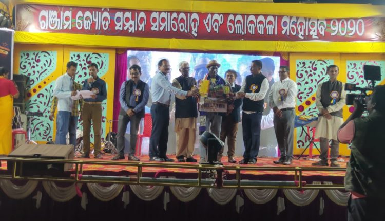 ଗତ କାଲି ସଂଧ୍ୟାରେ ଗଞ୍ଜାମ ଏନ୍ ଏ ସି ସ୍ଥିତ ଭାରତୀ ବିଦ୍ୟାପୀଠ ମିନି ଷ୍ଟାଡିୟମ ପରିସରରେ ଗଞ୍ଜାମ ଜ୍ଯୋତି ସମ୍ମାନ ସମାରୋହ ଏବଂ ଲୋକକଳା ମହୋତ୍ସବ ୨୦୨୦ ଅନୁଷ୍ଠିତ ହୋଇଯାଇଛି ।